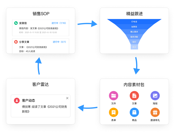 客戶雷達:追蹤客戶行為軌跡,洞察客戶需求,及時通知銷售跟進;